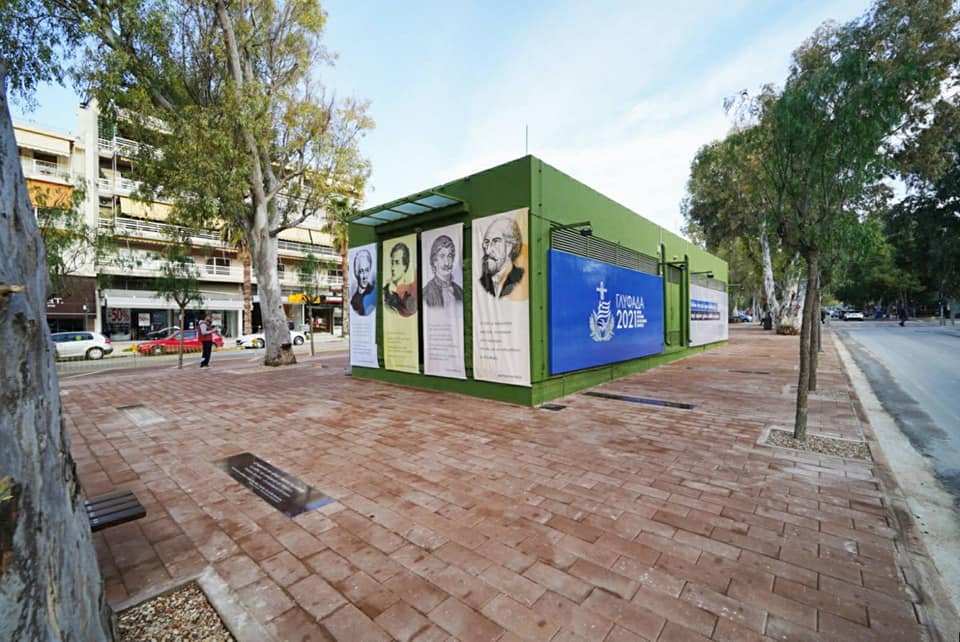 “Ο δρόμος των ποιητών προχωρά ! Παραδώσαμε σήμερα, Κυριακή, και το τρίτο κομμάτι (Μεταξά ως Λαζαράκη), με τις ίδιες υψηλές προδιαγραφές, με νέους στίχους στο διάβα σας από τους θησαυρούς της νεοελληνικής ποίησης. Αφορμή για την κατασκευή του δρόμου των ποιητών ήταν οι προτομές του Οδυσσέα Ελύτη και του Γιώργου Σεφέρη που βρίσκονταν για χρόνια στη Γλυφάδα μας (Λαμπράκη & Μεταξά). Αποκαταστήσαμε πλήρως τις προτομές και τις τοποθετήσαμε εκ νέου, όπως αξίζει στους δύο Νομπελίστες της πατρίδας μας. Και κάτι ακόμα σημαντικό: Το μικρό κτίριο με τα μηχανήματα για τη λειτουργία του τραμ δεν μπορούσε προφανώς να γκρεμιστεί. Το αξιοποιούμε όμως για περιοδικές εκθέσεις, με πρώτη αυτή που βλέπετε, για τη μεγάλη επέτειο των 200 ετών από την Επανάσταση του 1821″.
