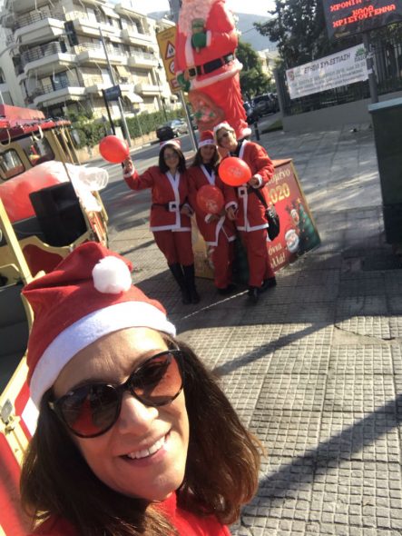 Όμως, ο δήμος Γλυφάδας που μας έχει συνηθίσει σε όμορφες πρωτοβουλίες κι ιδιαίτερα σε ότι έχει να κάνει με τα παιδιά ετοίμασε μια βόλτα με το τρενάκι του δήμου στα δημοτικά σχολεία της περιοχής. Το τρενάκι με επιβάτες το δήμαρχο Γλυφάδας, Γιώργο Παπανικολάου και την Αντιδήμαρχος Άννυ Καυκά ξεκίνησε τις επισκέψεις του στα δημοτικά σχολεία. “Σήμερα ήταν η πρώτη ημέρα που επισκεφτήκαμε 5-6 δημοτικά σχολεία και μέχρι την Παρασκευή (20\12) θα έχουμε πάει σε όλα. Δίνουμε στα παιδιά σκούφους του Άη Βασίλη, κόκκινα μπαλόνια και καραμέλες. Πραγματικά το απολαμβάνουν πάρα πολύ και είναι χαρούμενα” σχολιάζει η Αντιδήμαρχος Καθαριότητας και Ανακύκλωσης.