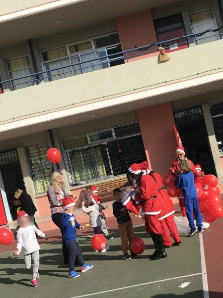 Μάλιστα, οι εργαζόμενοι του δήμου φόρεσαν την στολή του Άη Βασίλη για να δώσουν τα δώρα στα παιδιά συμβάλλοντας στη μικρή γιορτή που στήθηκε στα σχολεία.