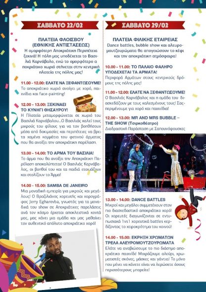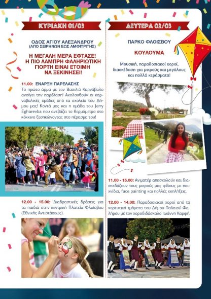 Ο Δήμος Παλαιού Φαλήρου έχει ετοιμάσει ένα πλούσιο πρόγραμμα με εκδηλώσεις για τις φετινές Απόκριες με ελεύθερη είσοδο.