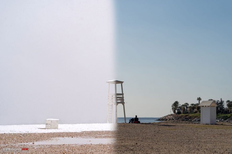 Ο φωτογράφος Ζήσιμος Ζήζος κατέγραψε με την κάμερά του τις εικόνες της «παγωμένης» Γλυφάδας και, λίγες μέρες μετά, με τον καιρό να είναι πια σχεδόν ανοιξιάτικος, φωτογράφισε τα ίδια ακριβώς μέρη, με περίπου 20 βαθμούς Κελσίου διαφορά.