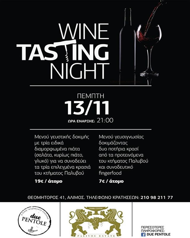 Σηκώνεις το ποτήρι. Το φέρνεις κοντά στη μύτη για να αιχμαλωτίσεις το άρωμα και μετά στο στόμα για να πάρεις μια γεύση. Το κρασί γυρνάει για λίγο στο στόμα πριν γίνει καταλήξει στον λάρυγγα. Το έχεις δει στα έργα, ώρα να το δοκιμάσεις (#diplis) και από κοντά, καθώς το Due Pentole σας προσκαλεί την Πέμπτη (13/11) σε μια γευστική δοκιμή τριών εξαιρετικών οίνων του κτήματος Παλυβού, σε ένα event που διοργανώνεται με τη συνεργασία της ΝΕΜΙΑ.