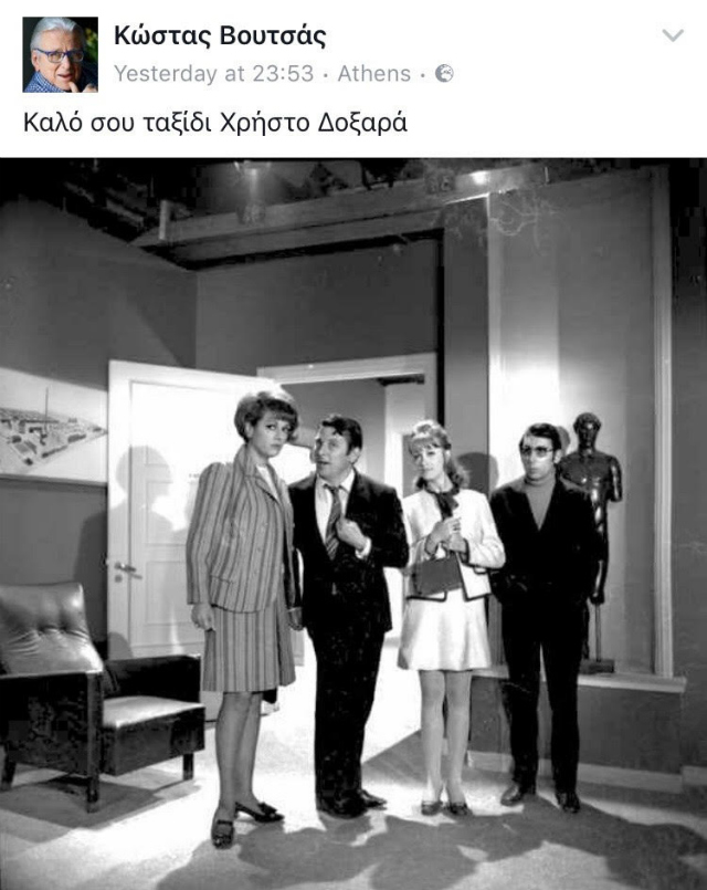 Ο καλός του φίλος, Κώστας Βουτσάς με μήνυμά του στον προσωπικό του λογαριασμό στο facebook, τον αποχαιρέτησε και ανέβασε μια φωτογραφία τους από ταινία στην οποία συμπρωταγωνιστούσαν.