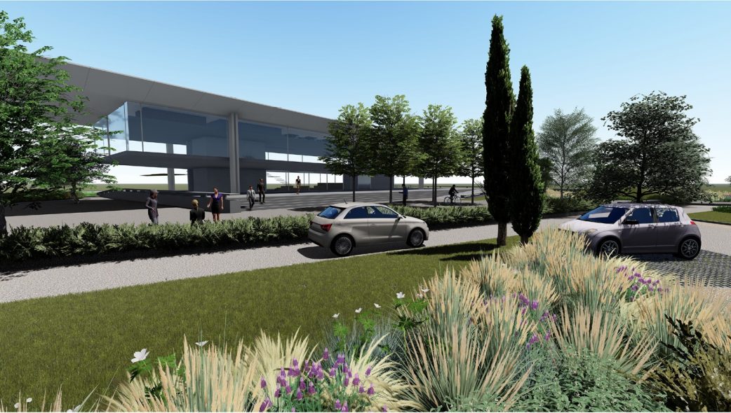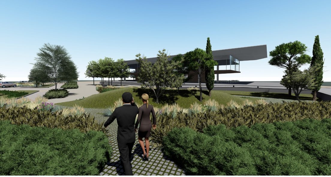 Η αρχιτεκτονική μελέτη προβλέπει τη δημιουργία ενός «διάφανου στεγάστρου» σε ένα σύγχρονο και καινοτόμο κτίριο που τοποθετεί τις βασικές του λειτουργίες σε ένα επίπεδο το οποίο αιωρείται κάτω από τη σκιά του μεταλλικού στεγάστρου.