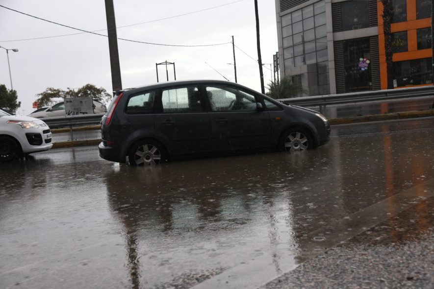 Έντονα καιρικά φαινόμενα στα νότια προάστια: Ένα εγκλωβισμένο αυτοκίνητο στη λεωφόρο Αλίμου