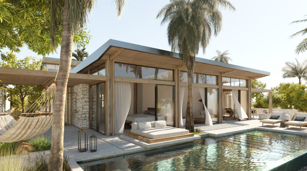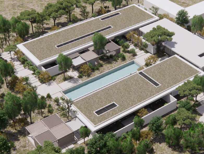 Πιο αναλυτικά, ένα από τα δύο διώροφα κτίσματα του ξενοδοχειακού συγκροτήματος, αυτό που διαθέτει μορφή καμπύλης, θα αποτελεί το κεντρικό κτίριο υποδοχής. Σε αυτό θα αναπτυχθούν branded εστιατόριο, παιδικός σταθμός, όπως και 12 δωμάτια. Επίσης, η αρχιτεκτονική μελέτη προβλέπει τη δημιουργία 95 επιπλωμένων διαμερισμάτων, ενώ στο δυτικό όριο της έκτασης θα αναπτυχθούν 14 ανεξάρτητες κατοικίες ενεργειακά αυτόνομες, με ιδιωτικό υπαίθριο χώρο και χώρο στάθμευσης.