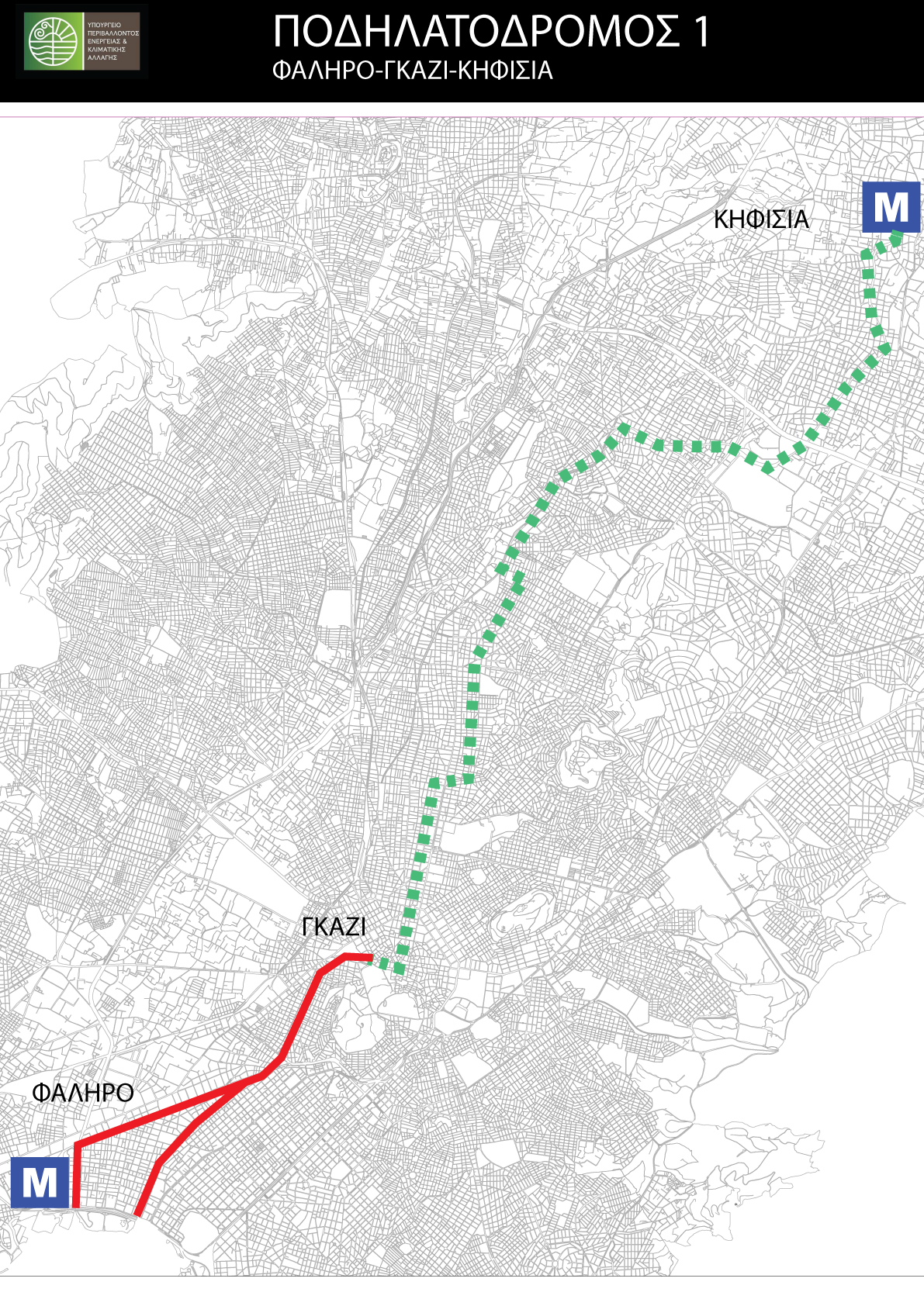 Την κατασκευή του ποδηλατόδρομου Γκάζι-Κηφισιά (τμήμα του μεγαλύτερου ποδηλατόδρομου Φάληρο-Κηφισιά) και του ποδηλατόδρομου Κατεχάκη-Ευαγγελισμός μέσω της Πανεπιστημιούπολης και της Πολυτεχνειούπολης ανακοίνωσε ο υπουργός Περιβάλλοντος και Ενέργειας.
