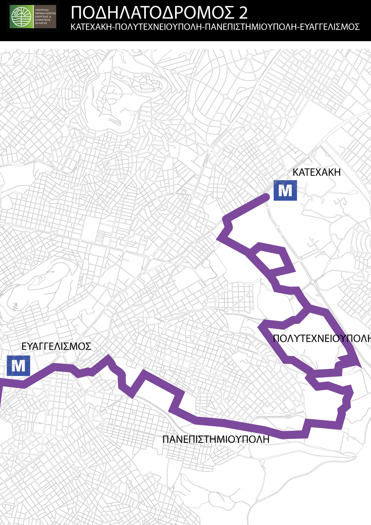 Ποδηλατόδρομος 2: Μετρό Κατεχάκη – Πολυτεχνειούπολη/Πανεπιστημιούπολη -Ευαγγελισμός