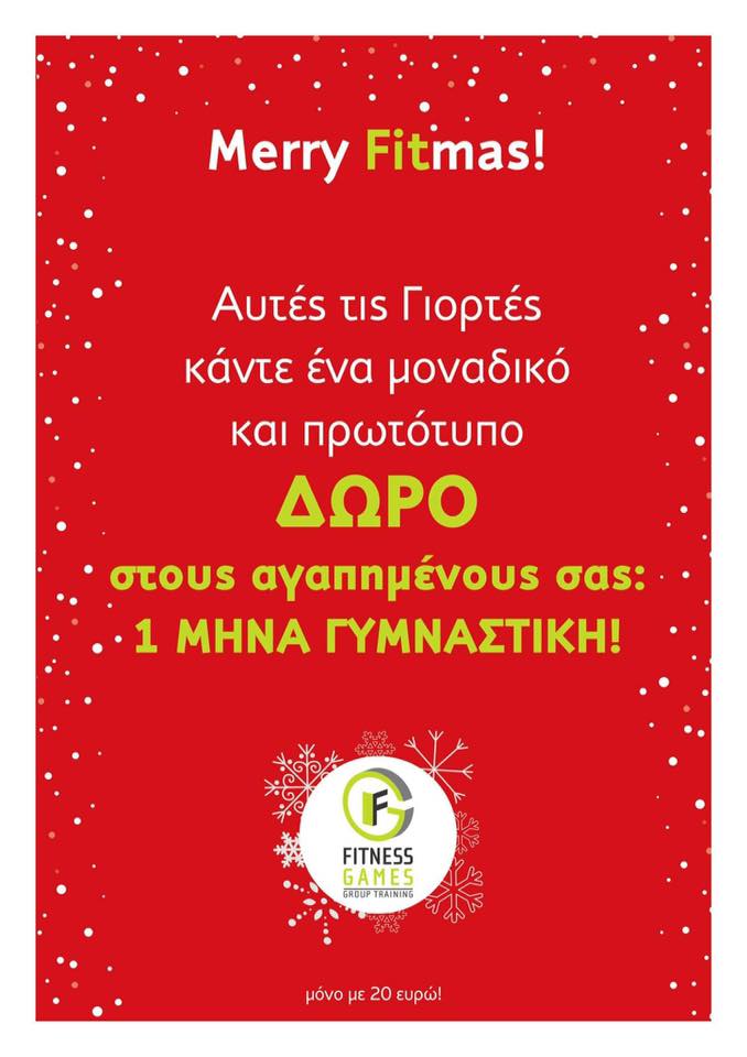 Το Fitness Games σας προσφέρει Πρωτοχρονιάτικο δώρο αξίας 70 ευρώ στην τιμή των 20 ευρώ για ένα μήνα συνδρομή σε όλα τα προγράμματα του γυμναστηρίου.
