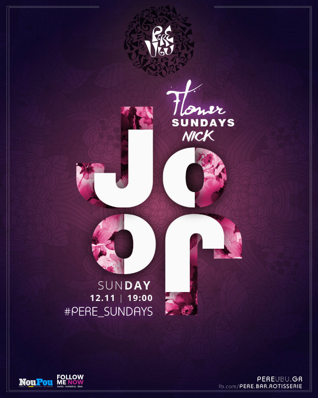 Αυτήν την Κυριακή 12 Νοεμβρίου, ο Dj Nick Jojo θα βρίσκεται στο Pere από τις 19.00, για το καλύτερο κλείσιμο της εβδομάδας.