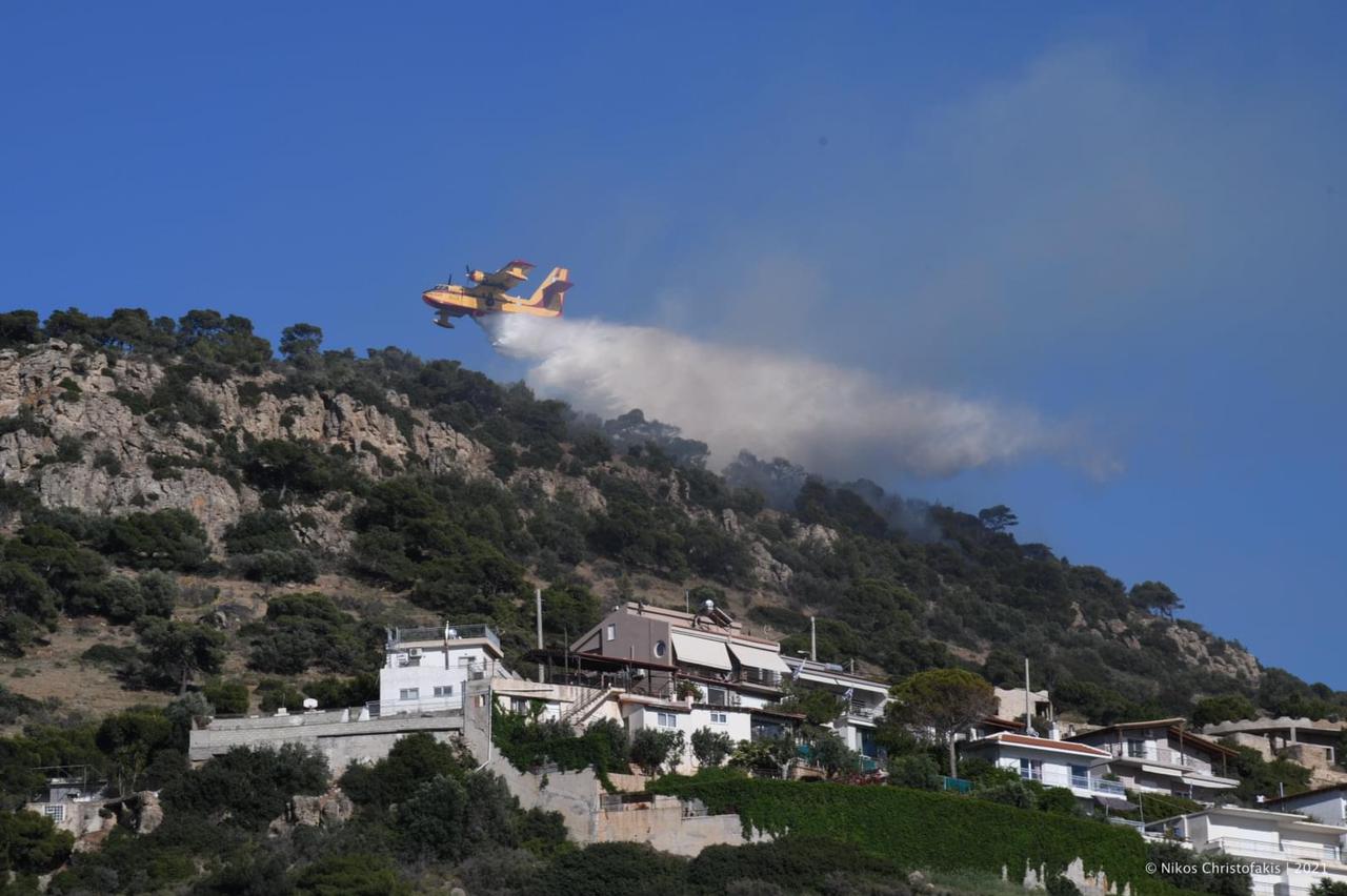 Φωτιά στην Αγία Μαρίνα: Φωτογραφίες από την επιχείρηση κατάσβεσης – Άνοιξε η Αθηνών Σουνίου