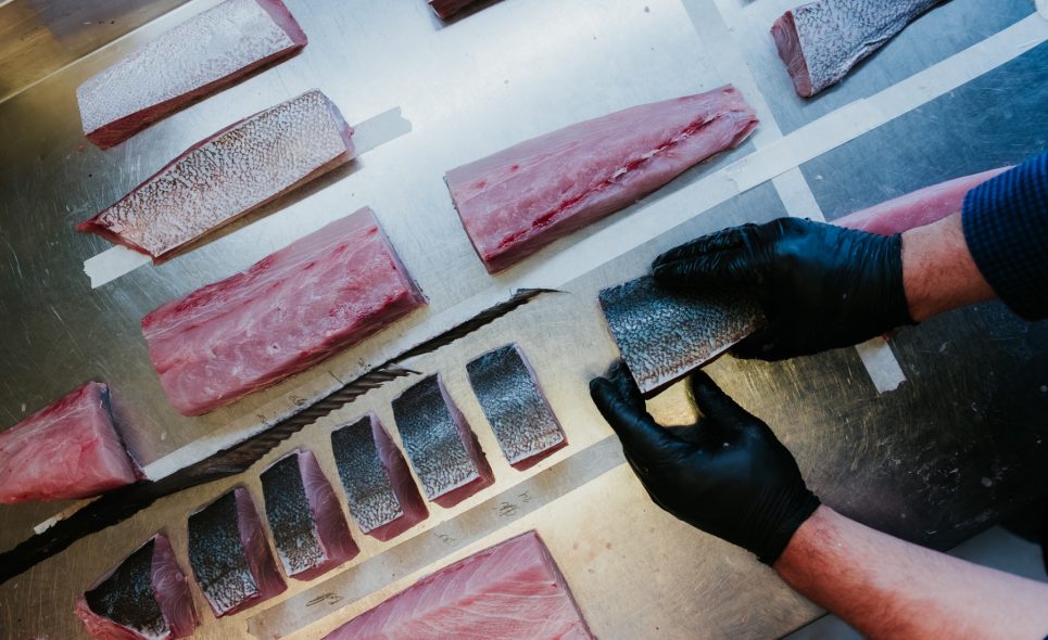 Στο Βlue Fish, υπό την γαστρονομική μπαγκέτα του Γιώργου Οικονομίδη, οι λάτρεις του ψαριού θα απολαύσουν ξανά τη δημιουργική ψαροφαγία όπως αυτή εκφράζεται μέσα από την head to tail φιλοσοφία που στην ουσία “σπάει” το ψάρι σε μέρη και παρουσιάζει το κάθε μέρος του με διαφορετική συνταγή, σαν μία θεατρική παράσταση που λαμβάνει χώρα στο τραπέζι των συνδαιτυμόνων. Η παράσταση χωρίζεται σε 4 “sequels”. Κεφάλι, μάγουλα και τα δύο φιλέτα. Οι περισσότεροι λάτρεις των ψαριών υποστηρίζουν πως η πιο βαθιά γεύση βρίσκεται στο κεφάλι και στα “μάγουλα” και στις περισσότερες περιπτώσεις, μένει στην άκρη του τραπεζιού και πετιέται. Γιατί λοιπόν να μην χρησιμοποιηθεί και να μαγειρευτεί σε ένα κριθαρώτο ή να γίνει μία βελούδινη σούπα, και να έρθει στο τραπέζι σαν πρώτο πιάτο, όσο το υπόλοιπο σώμα του ψαριού ψήνεται μαεστρικά στη robata;