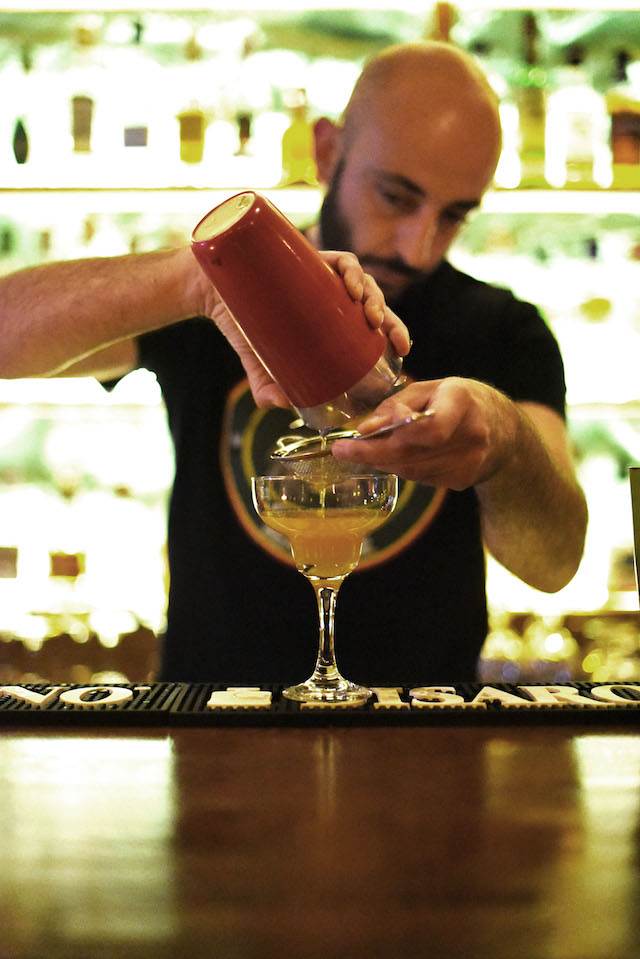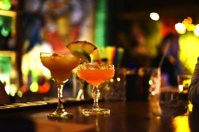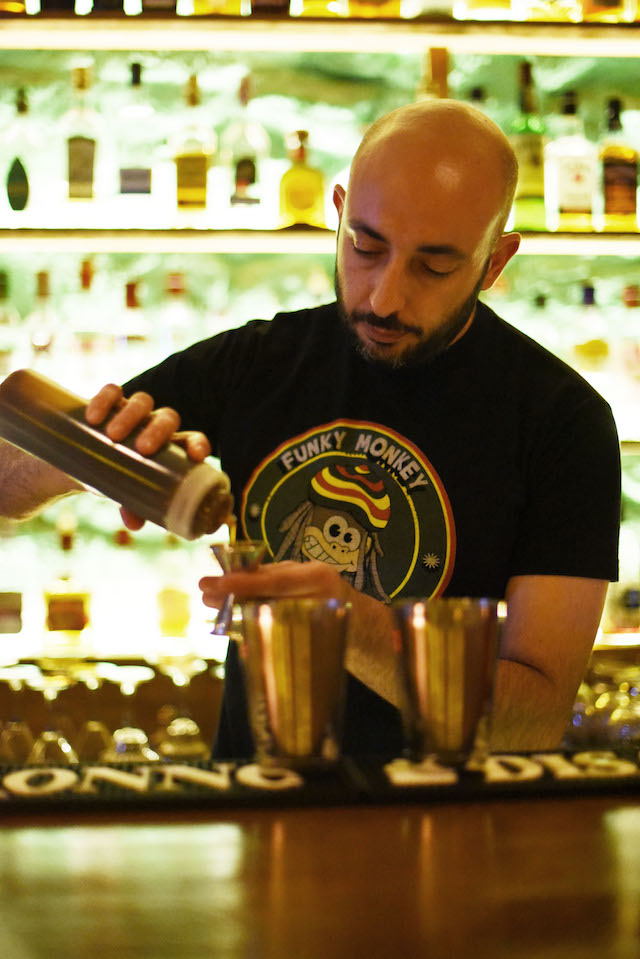 Καθισμένοι στο μπαρ του Funky Monkey, αποφασίσουμε να δοκιμάσουμε δύο από τα best seller cocktails του, το Monkey Pirate με βάση το ρούμι, και το Funky Sunset με βάση το τζιν. Νομίζεις ότι είναι τυχαίο το γεγονός ότι ο συνδυασμός τους σχηματίζει το όνομα του μαγαζιού; Ναι, κι εγώ.