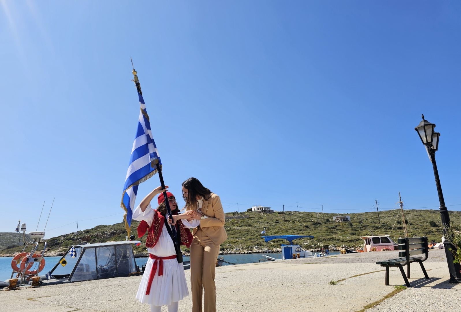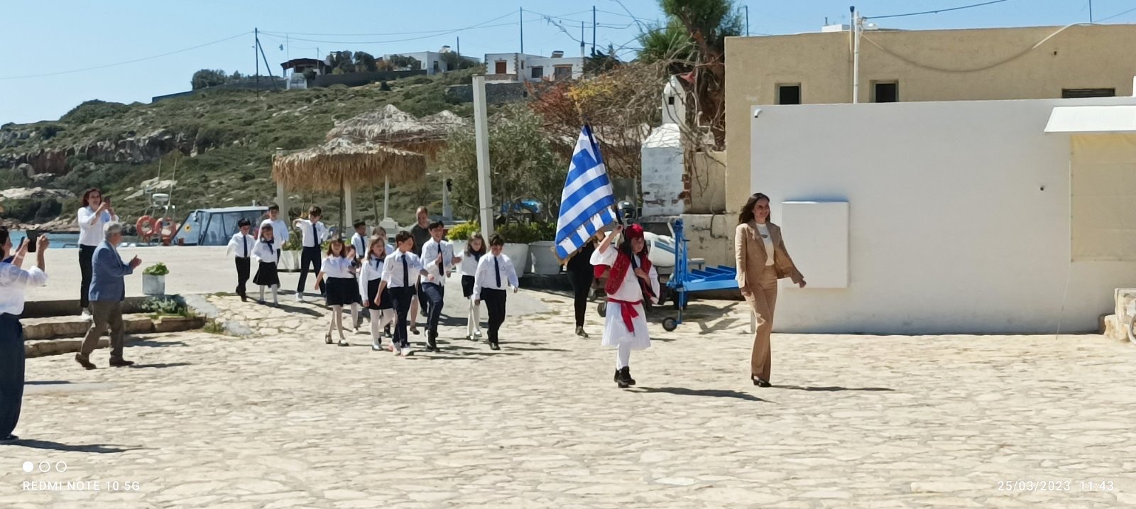 Το πρωί του Σαββάτου, λοιπόν, πραγματοποιήθηκε με μεγάλη επιτυχία η παρέλαση στο νησί των Αρκιών. Οι μαθητές από τη Βούλα παρέλασαν δίπλα στον Άγγελο, ο οποίος φαίνεται πως χάρηκε ιδιαίτερα τόσο για αυτήν την εξαιρετικού συμβολισμού κίνηση όσο και για την ίδια την παρουσία τους στο νησί αυτές τις μέρες. Παράλληλα, στους Αρκιούς ήρθε άγημα του Λιμενικού Σώματος για να παρευρεθεί στην παρέλαση.