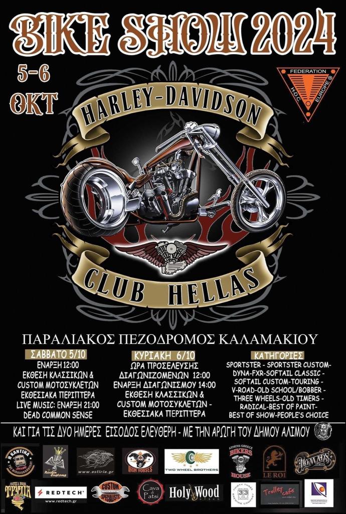 Η Ελληνική Λέσχη Φίλων Μοτοσικλέτας Harley Davidson, σε συνεργασία με τον Δήμο Αλίμου, διοργανώνει το «Bike Show 2024» το πρώτο Σαββατοκύριακο του Οκτωβρίου. Η εκδήλωση θα ξεκινήσει μετά τις 12:00 το μεσημέρι και τις δύο ημέρες, με τις Harley Davidson να πρωταγωνιστούν, σε μία μοναδική επίδειξη μηχανών για τους φίλους της μοτοσικλέτας.