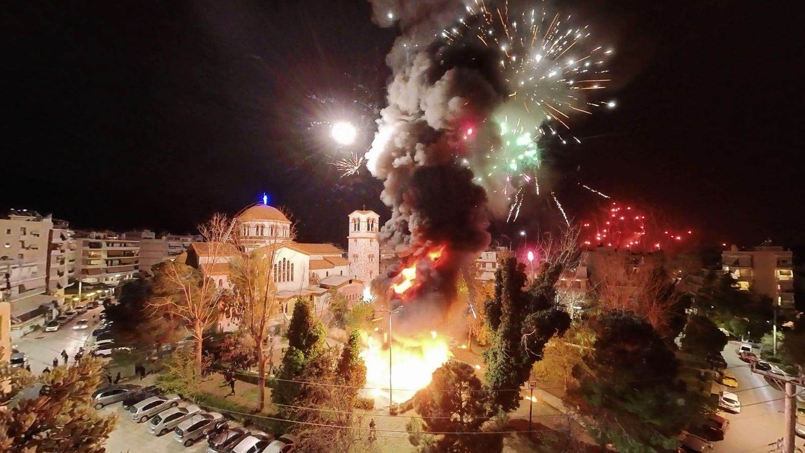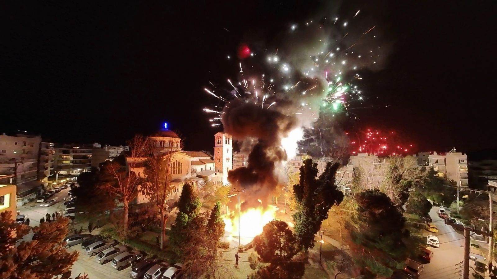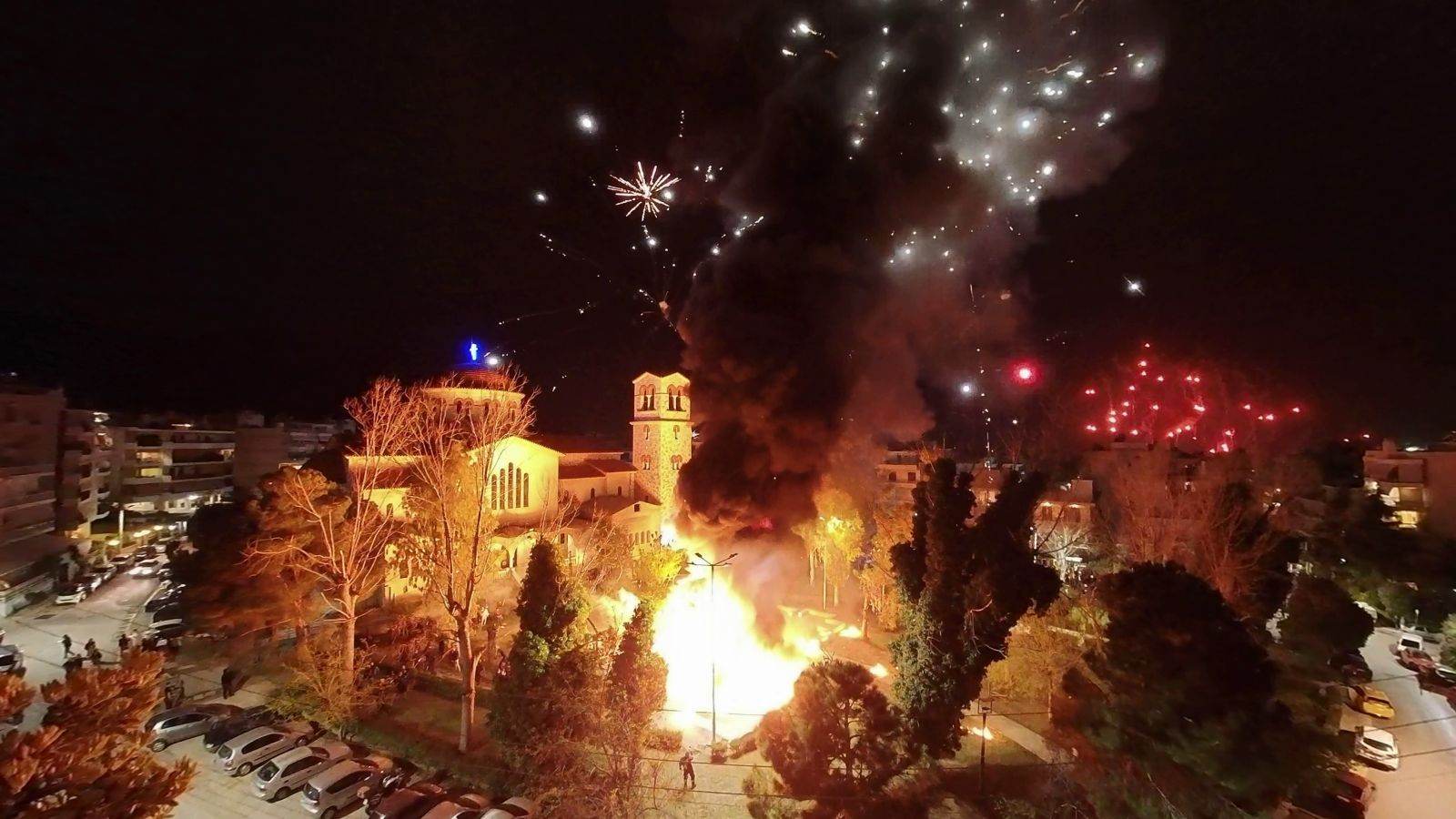 Επεισοδιακό ήταν το βράδυ της Ανάστασης στην πλατεία Καραϊσκάκη της Άνω Γλυφάδας, καθώς μια ομάδα περίπου 30 ατόμων έβαλε φωτιά έξω από τον Ιερό Ναό Εισοδίων Θεοτόκου.