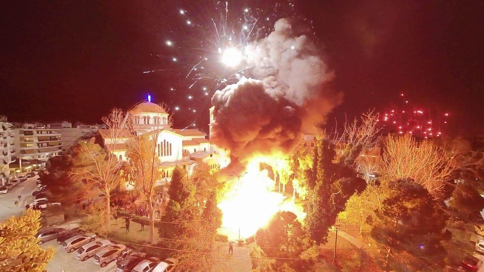 Οι ταραχοποιοί, ανενόχλητοι, έριχναν για αρκετά λεπτά κροτίδες, μολότοφ και βεγγαλικά, ενώ το σκηνικό θύμιζε εμπόλεμη ζώνη, με “ρουκέτες” να εκτοξεύονται λίγα μέτρα μακριά από τους πολίτες που είχαν βρεθεί στην εκκλησία για να γιορτάσουν την Ανάσταση. Στη συνέχεια, αφού οι καμπάνες είχαν σημάνει πλέον την Ανάσταση, οι άγνωστοι δράστες αποχώρησαν όλοι μαζί.