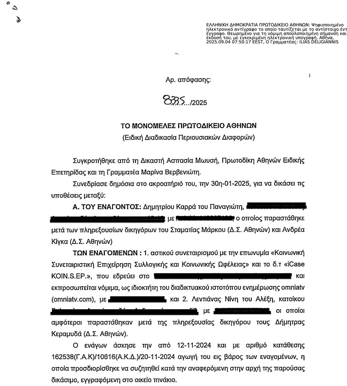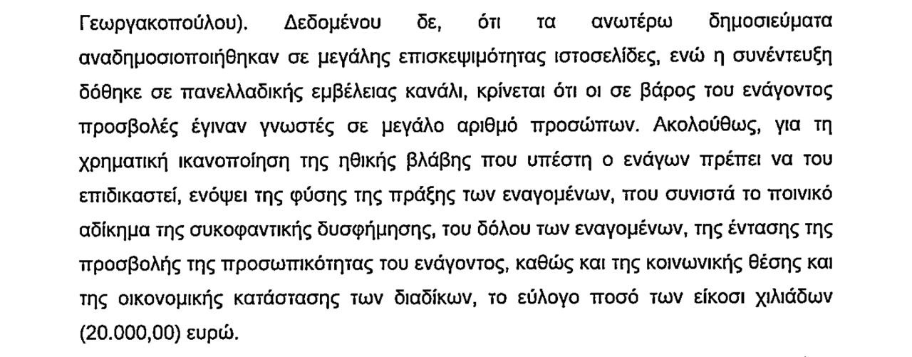 Ένα σχεδόν χρόνο μετά τη δημοσίευση των εξωφρενικών ψεμάτων σε βάρος μου, η δικαιοσύνη έβαλε τους συκοφάντες στη θέση τους. Δημοσιεύω την απόφαση του Πρωτοδικείου Αθηνών, τονίζοντας σημαντικές λεπτομέρειες του κειμένου, για να διαλύσω κάθε σκέψη ότι μπορεί εκείνο το κατάπτυστο δημοσίευμα να περιείχε έστω και έναν κόκκο αλήθειας. Κι όμως εκείνες τις ημέρες αναπαράχθηκε ως κακοήθης όγκος σε μέσα ενημέρωσης και ιδιωτικές συζητήσεις, σε μια εκστρατεία λάσπης που με σημάδεψε για πάντα.