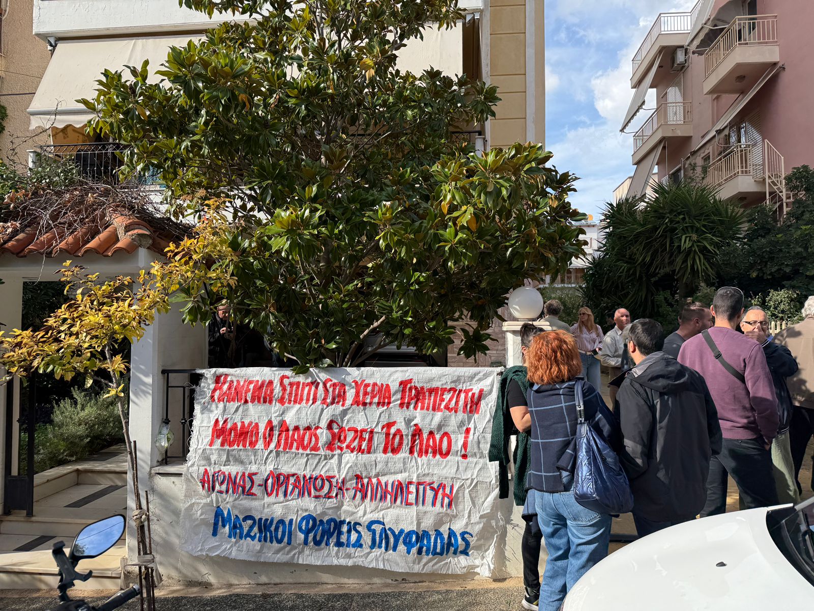 Από νωρίς το πρωί της Τετάρτης 12 Νοεμβρίου επικρατεί ένταση στη Γλυφάδα, καθώς βρίσκεται σε εξέλιξη διαδικασία έξωσης τετραμελούς οικογένειας από σπίτι στην οδό Χίου.