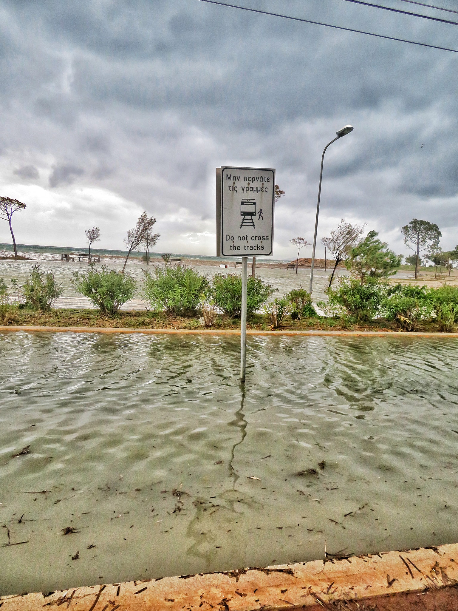 Γλυφάδα: Η θάλασσα βγήκε μέχρι τις γραμμές του Τραμ