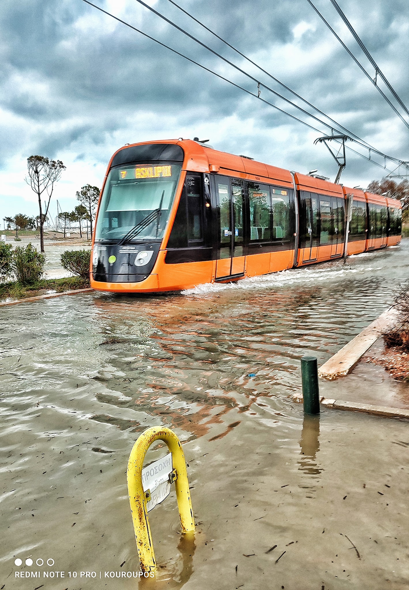 Δρομολόγια μέσα στη θάλασσα έκανε χθες Σάββατο το τραμ στη Γλυφάδα, λόγω των ισχυρών ανέμων που έφεραν το νερό μέχρι τις γραμμές του- Οι εικόνες που κατέγραψε κάτοικος της περιοχής