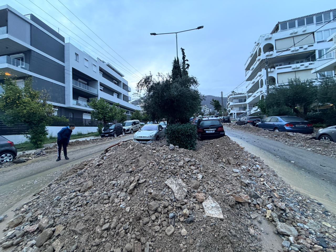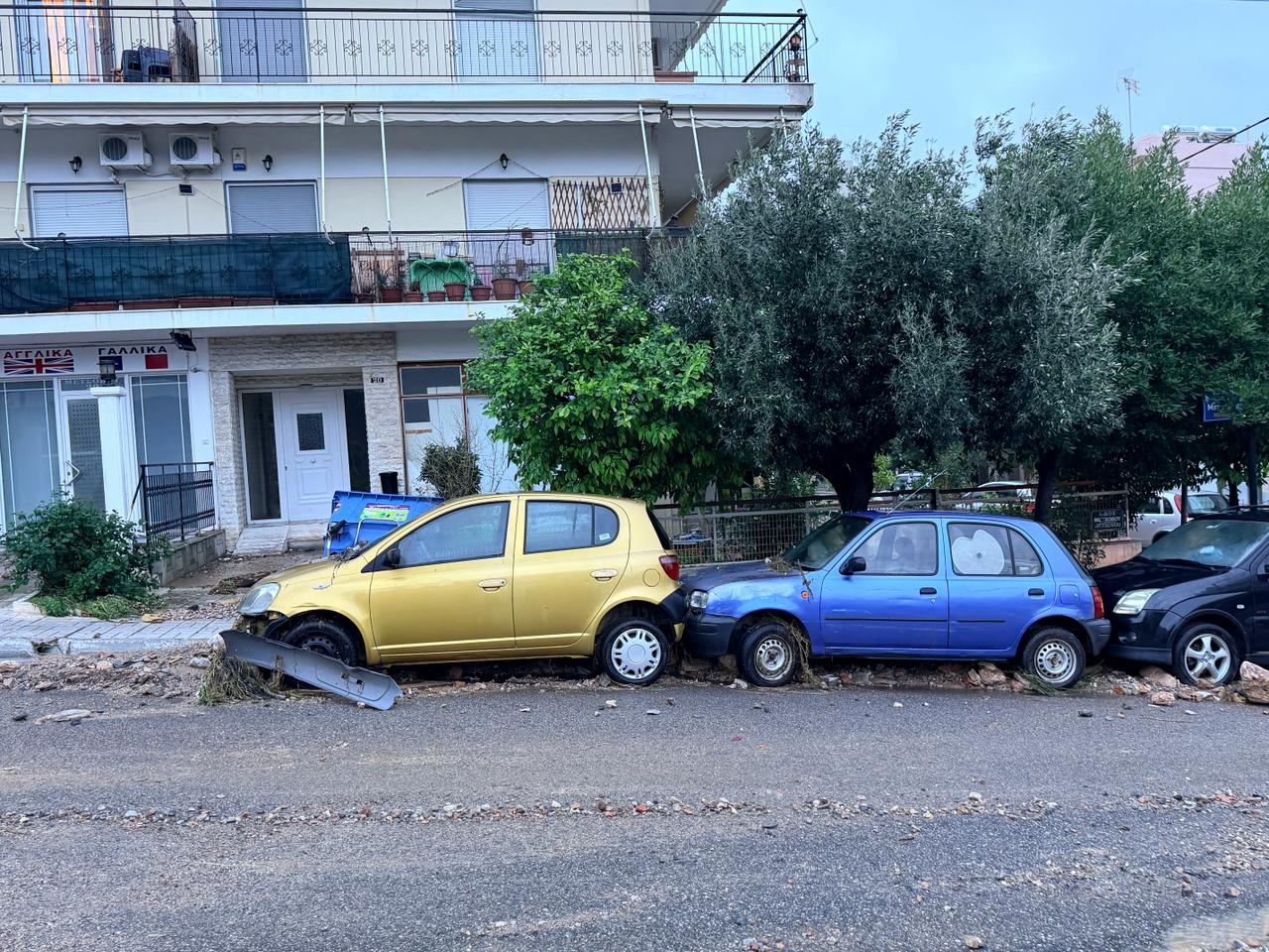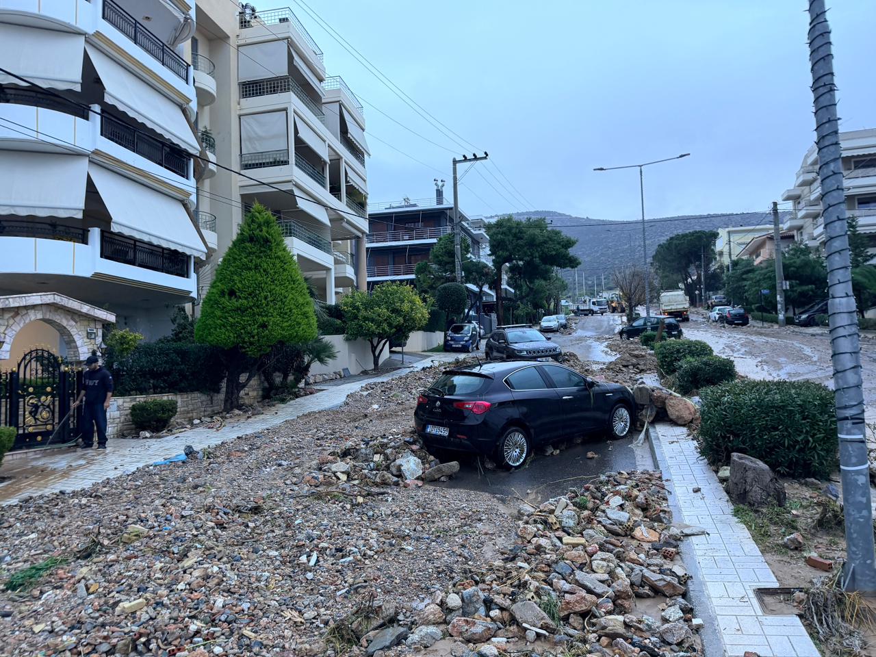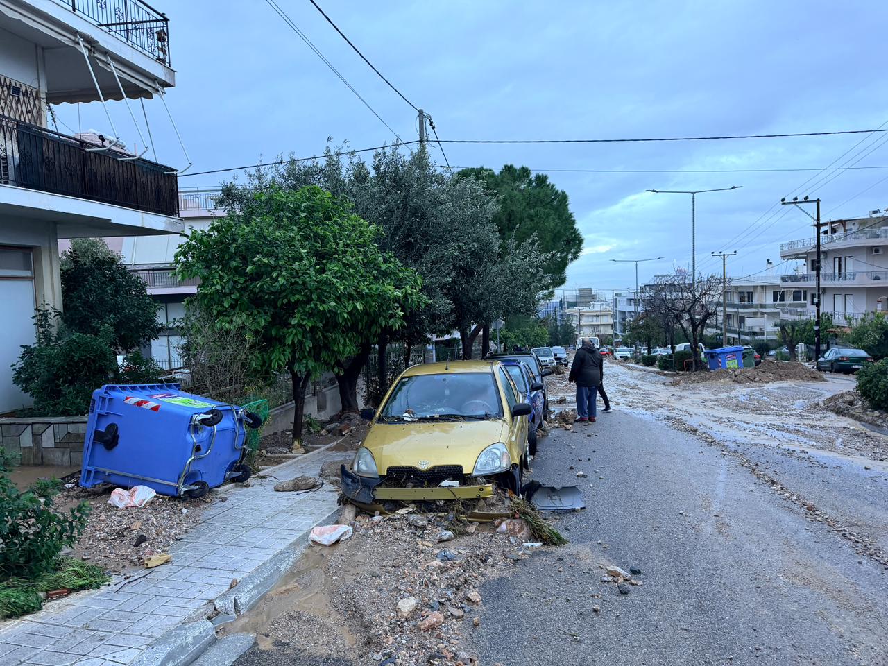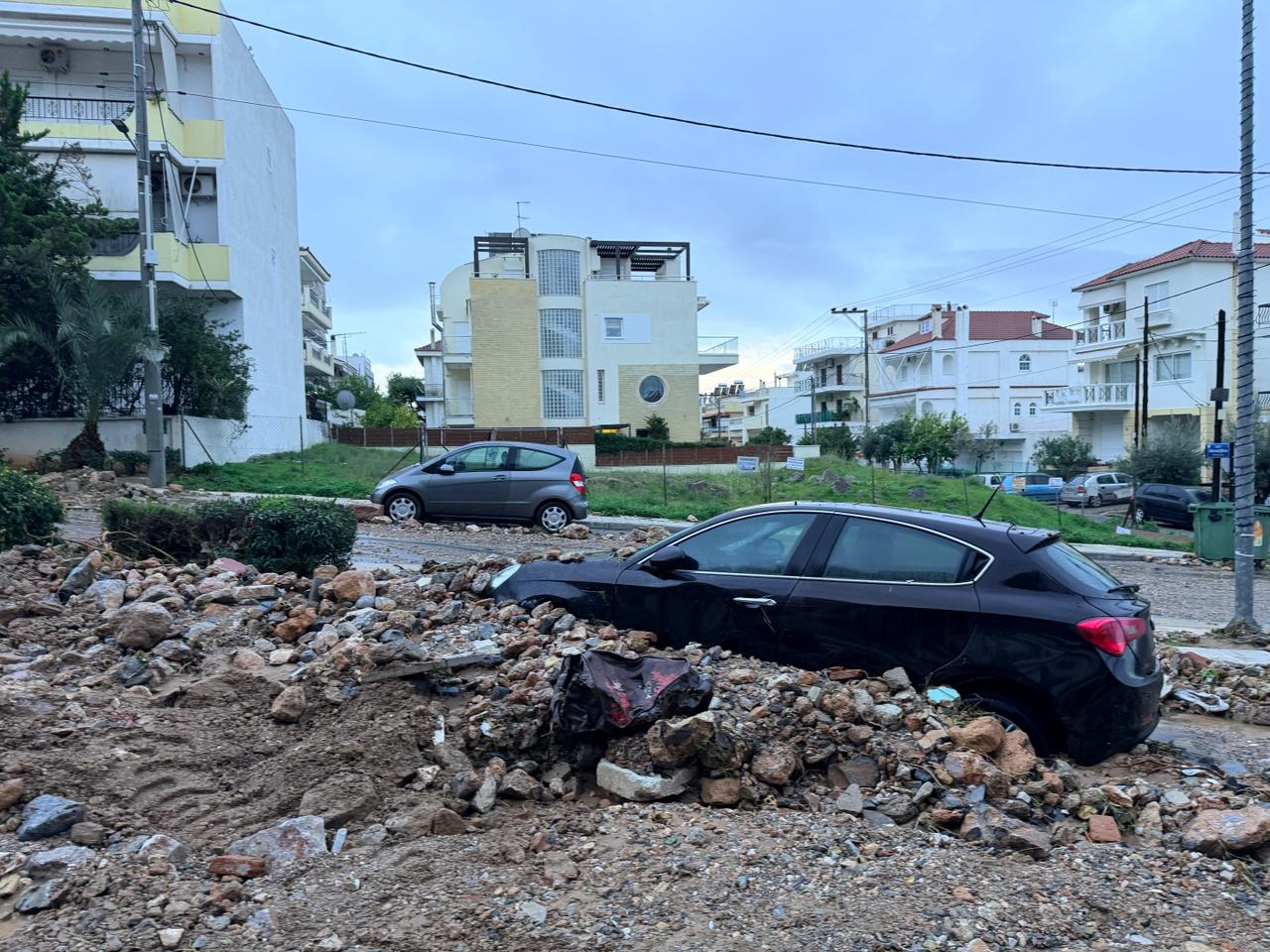 Σύμφωνα με μαρτυρίες κατοίκων, οι δρόμοι της περιοχής παραμένουν καλυμμένοι από φερτά υλικά, λάσπες, πέτρες και χώματα, ενώ δεκάδες αυτοκίνητα έχουν υποστεί σοβαρές ζημιές, με ορισμένα να είναι θαμμένα μέχρι και τη μέση.