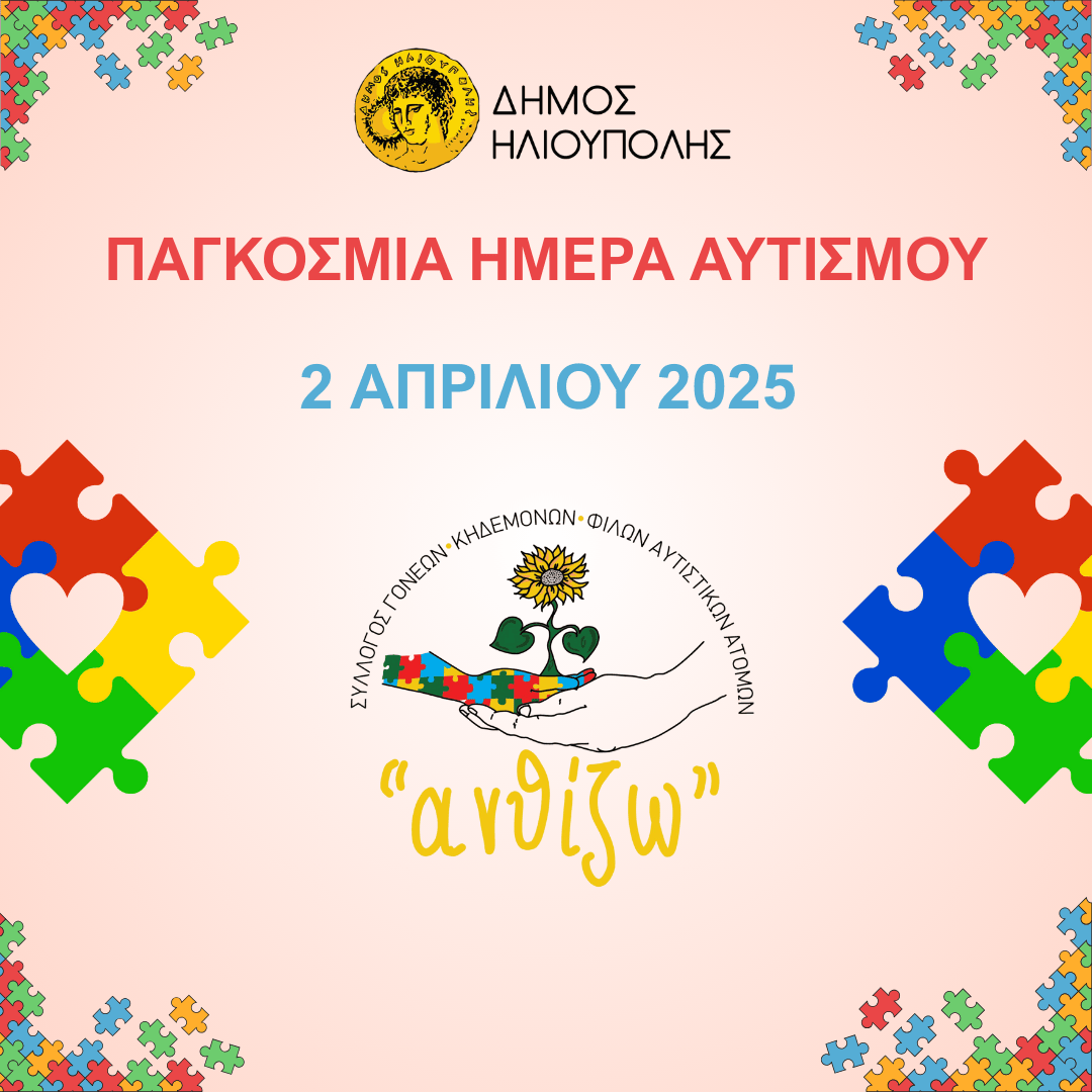 Με αφορμή την Παγκόσμια Ημέρα Ευαισθητοποίησης για τον Αυτισμό στις 2 Απριλίου, ο Δήμος Ηλιούπολης ανακοίνωσε την ίδρυση του Συλλόγου «ανθίζω».