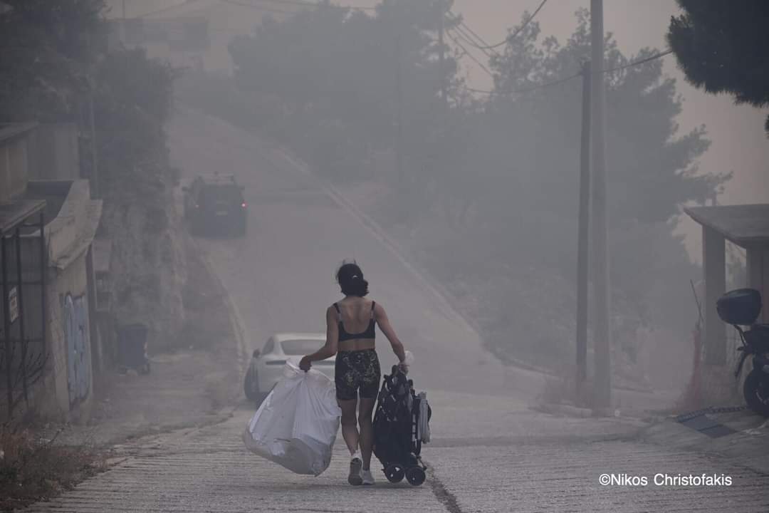 Η ατμόσφαιρα στην περιοχή είναι αποπνικτική εξαιτίας του καπνού και υπάρχουν στάχτες παντού. Ο κόσμος έχει ήδη αρχίσει να εγκαταλείπει τα σπίτια του. Οι εικόνες μιλούν από μόνες τους.