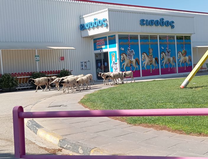 Ένα κοπάδι με πρόβατα εντοπίστηκε έξω από το κατάστημα Jumbo της Βάρης-Κορωπίου, τραβώντας τα βλέμματα των περαστικών.