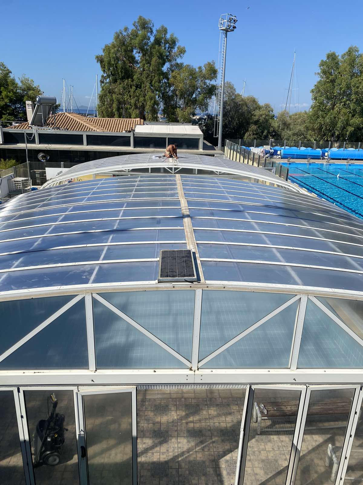 Οι εργασίες στο Δημοτικό Κολυμβητήριο του Αλίμου συνεχίζονται, με την προσθήκη στέγαστρου στη μικρή κολυμβητική δεξαμενή.