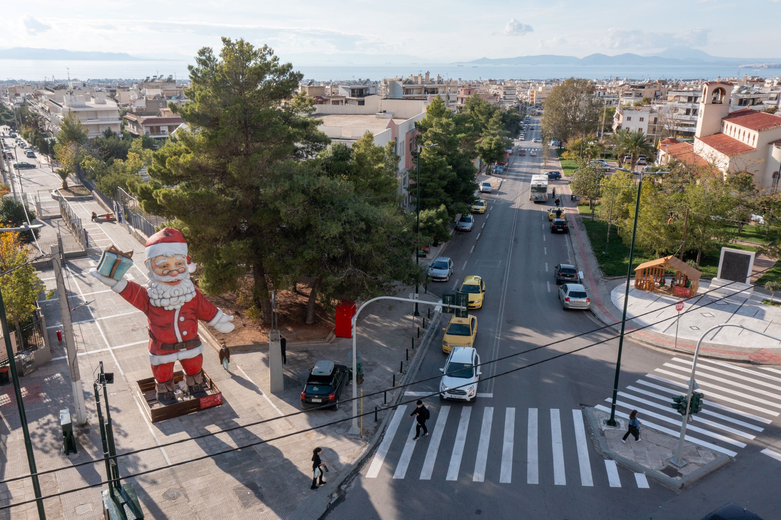 Επέστρεψε ο γιγάντιος Άγιος Βασίλης της Γλυφάδας, εν όψει των γιορτών, σε άνω και κάτω Γλυφάδα.