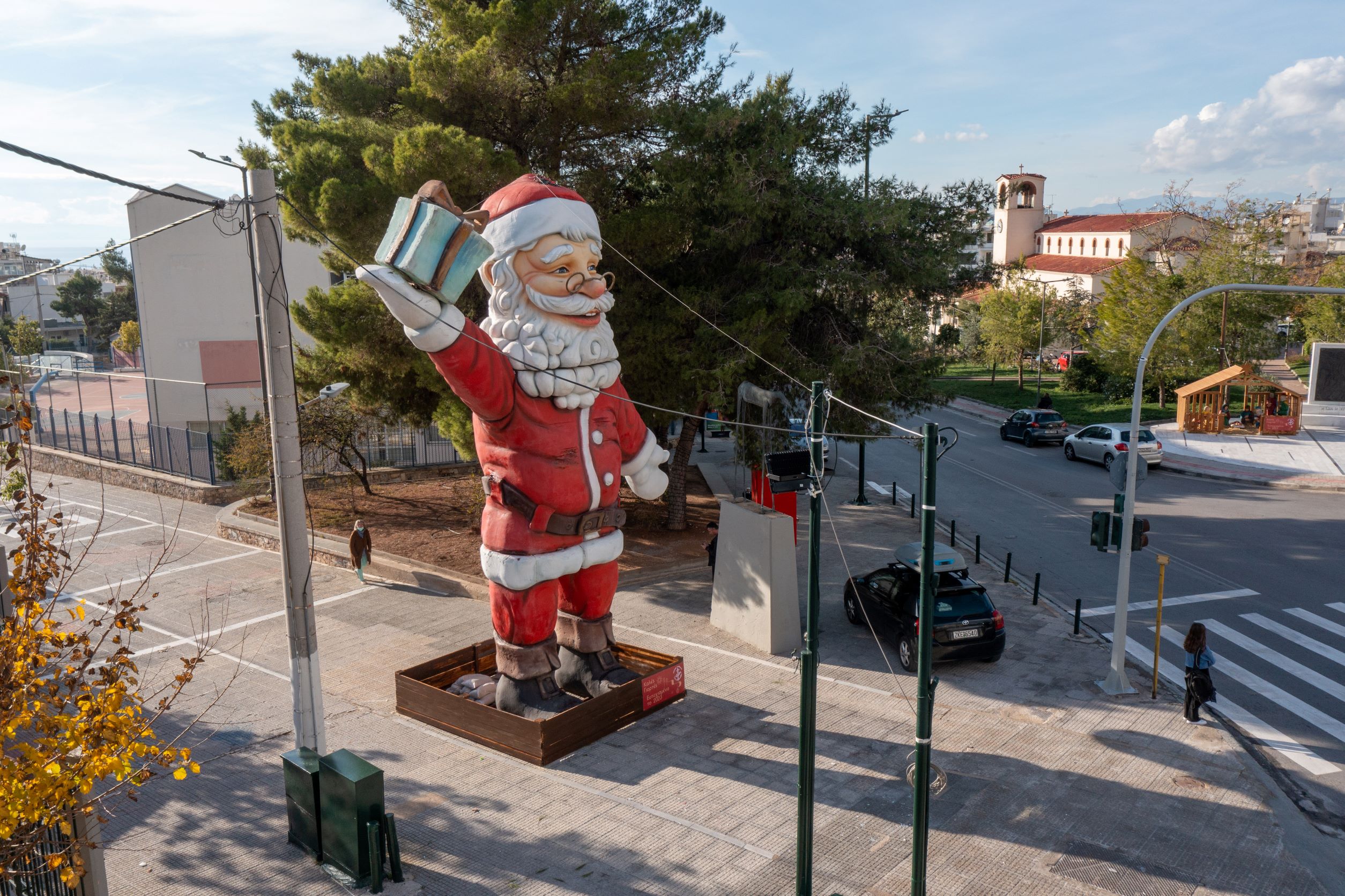 Φέτος, για τρίτη χρονιά, ο γιγάντιος Άγιος Βασίλης έχει πάρει και πάλι τη θέση του στην πλατεία Αγίου Τρύφωνα στην Άνω Γλυφάδα, αλλά και στην πλατεία Κατράκη και περιμένει μικρούς και μεγάλους να τον απαθανατίσουν.