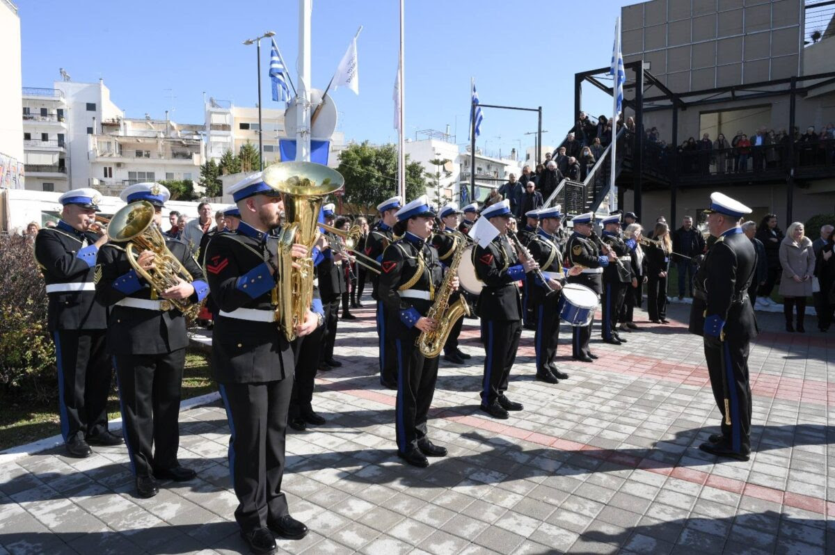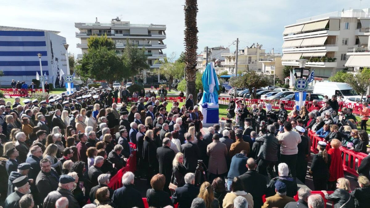 Μετά την ολοκλήρωση των εκδηλώσεων στο Πολιτιστικό – Συνεδριακό Κέντρο, πραγματοποιήθηκαν τα αποκαλυπτήρια του ανδριάντα στην Πλατεία Δημαρχείου, παρουσία της Φιλαρμονικής του Πολεμικού Ναυτικού και αγήματος που απέδωσε τιμές. Την επιμνημόσυνη δέηση τέλεσαν εκπρόσωποι των Μητροπόλεων Νέας Σμύρνης και Γλυφάδας.