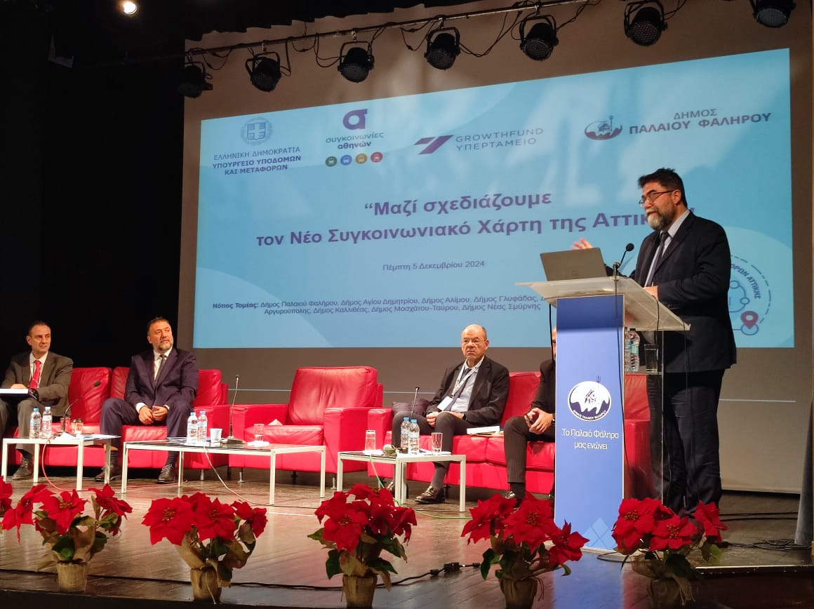 Καθοριστικός είναι ο ρόλος των Νοτίων Προαστίων στη χάραξη του νέου Στρατηγικού Σχεδίου Μεταφορών τα επόμενα χρόνια, ενώ μεγάλο μέρος του σχεδιασμού της Αττικής θα βασιστεί στις αναπτύξεις του Μητροπολιτικού Πάρκου Φαλήρου που υλοποιεί η Περιφέρεια Αττικής και της εμβληματικής επένδυσης στο Ελληνικό. Αυτά αναφέρθηκαν μεταξύ άλλων στην Ημερίδα με θέμα «Μαζί σχεδιάζουμε τον Νέο Συγκοινωνιακό Χάρτη της Αττικής», που διοργάνωσε στο Δημαρχείο Παλαιού Φαλήρου το Υπουργείο Υποδομών και Μεταφορών σε συνεργασία με τον ΟΑΣΑ, το Growthfund (Υπερταμείο), το Εθνικό Επενδυτικό Ταμείο και τον Δήμο Παλαιού Φαλήρου την Πέμπτη 5 Δεκεμβρίου 2024 με τη συμμετοχή εκπροσώπων από τους 8 Δήμους του Νοτίου Τομέα Αττικής.