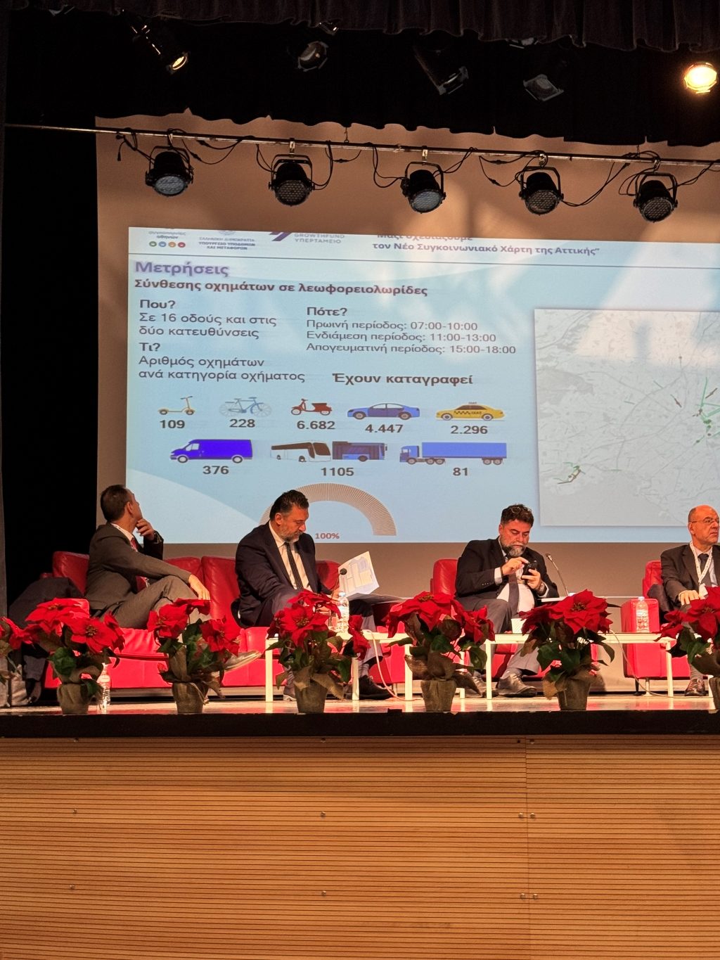 Στην Αθήνα αυτή τη στιγμή κυκλοφορούν 2.500.000 αυτοκίνητα και 10.000 ταξί καθώς και 750.000 μοτοσυκλέτες. Σύμφωνα με τον πρόεδρο των Ελλήνων Συγκοινωνιολόγων, Θανάση Τσιάνο, το υπουργείο Μεταφορών έχει εντοπίσει τα προβλήματα στα δημόσια μέσα μεταφοράς. «Τώρα που συμφωνούμε στα προβλήματα, θα πρέπει να τρέξουμε για να τα λύσουμε. Έχουμε μπροστά μας το στρατηγικό σχέδιο μεταφορών, ένα δύσκολο έργο που υλοποιούμε».