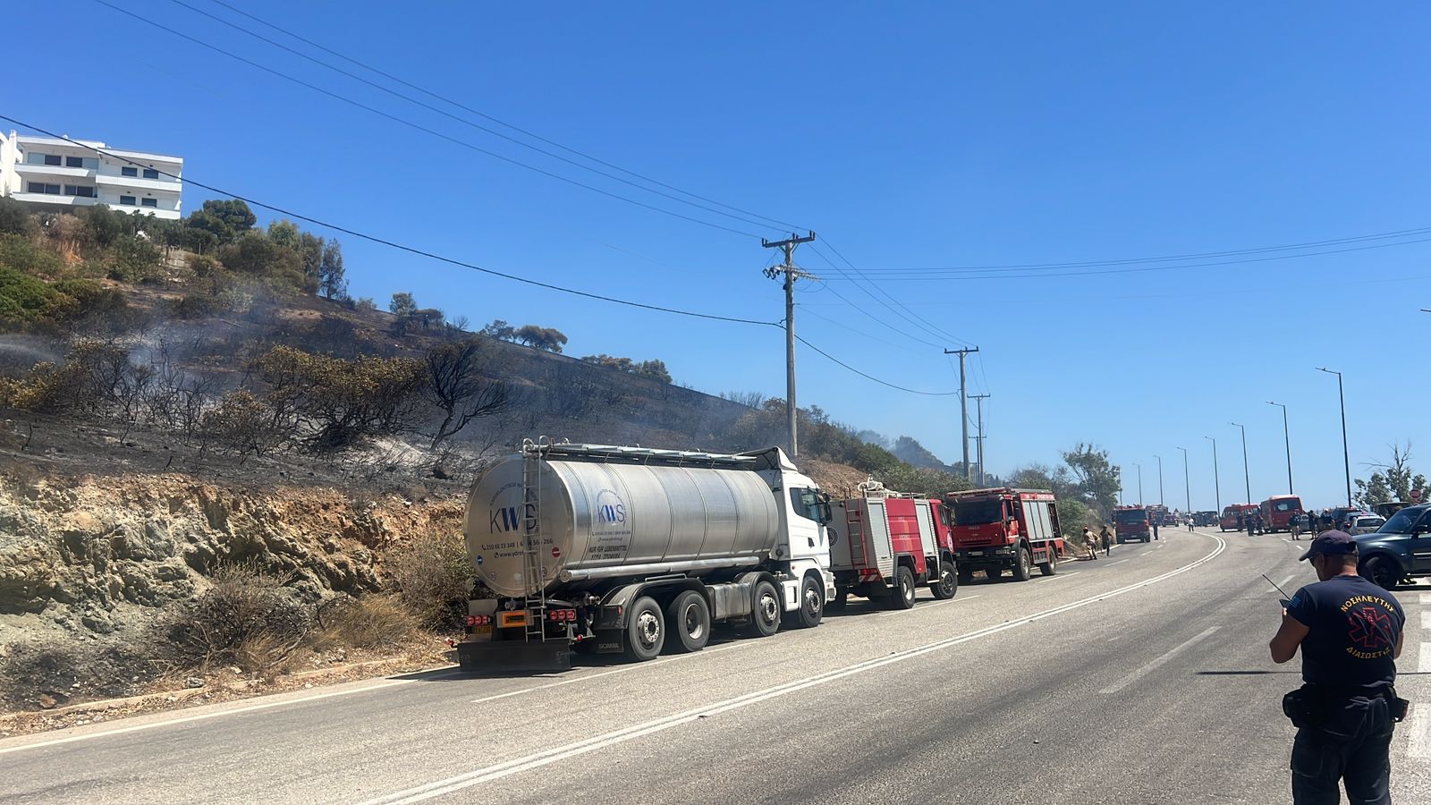 Σαρωνίδα: Φωτιά στο Μαύρο Λιθάρι, κλειστή η Παραλιακή