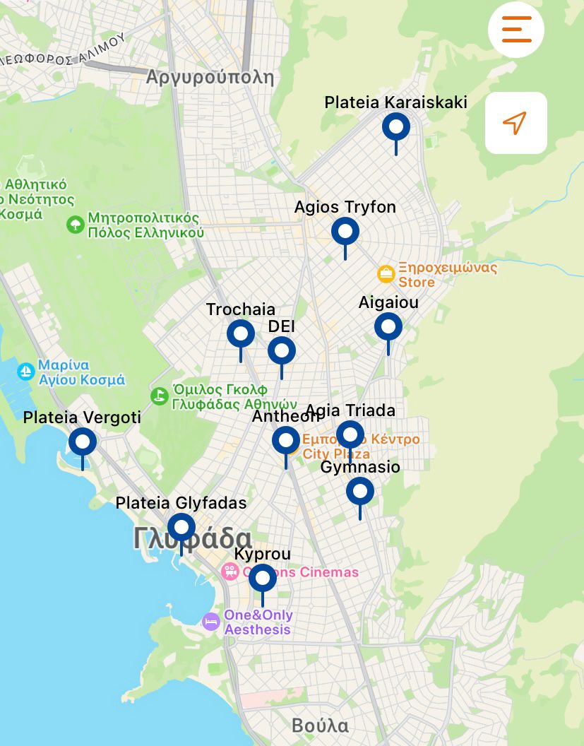 - Ανθέων (Έξω από το εμπορικό κέντρο City Plaza επί του παραδρόμου της Βουλιαγμένης)