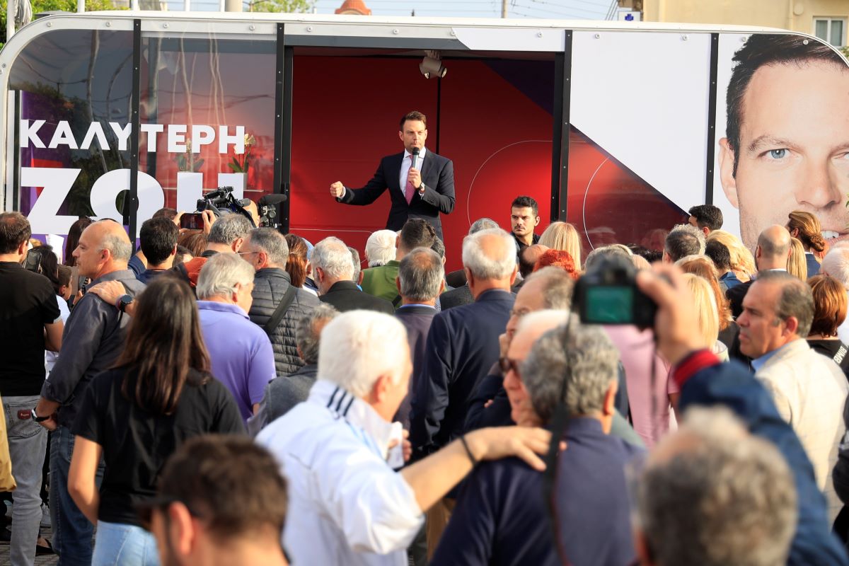 Στην Ηλιούπολη ο Στέφανος Κασσελάκης, στο πλαίσιο της περιοδείας του για τις ευρωεκλογές