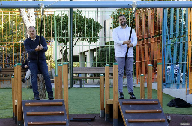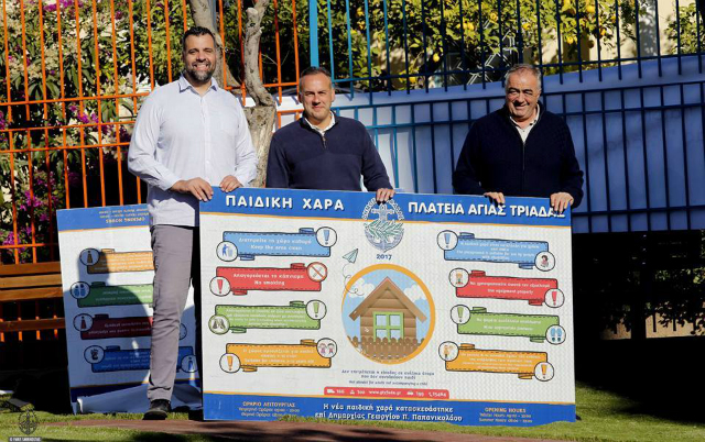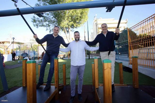 Πριν τα εγκαίνια της νέας παιδικής χαράς, την Κυριακή 10 Δεκεμβρίου, ο Γιώργος Παπανικολάου, μαζί με τον Περικλή Δορκοφίκη και τον Βλάση Μπισμπίκη, ξανανιώθουν παιδιά.