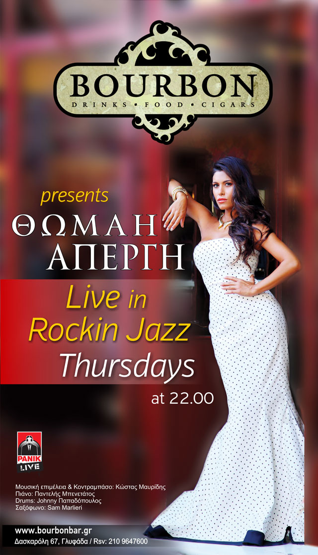 Αυτό το ρεπερτόριο με το οποίο γνωρίσαμε (και αγαπήσαμε) τη Θωμαή, περιμένουμε να ακούσουμε και πάλι αλλά με πιο ροκ διαθέσεις, μιας και μάθαμε ότι σκοπεύει να διασκευάσει και να φέρει στα μέτρα της πολλά αγαπημένα τραγούδια. Το Bourbon “σηκώνει” τις ροκ διαθέσεις χρόνια τώρα και η Θωμαή Απέργη έχει αυτό που χρειάζεται για να μας κάνει και πάλι να κολλήσουμε με τα live της. Αυτό το Rockin Jazz Thursdays ακούγεται άλλωστε πολύ δελεαστικό.