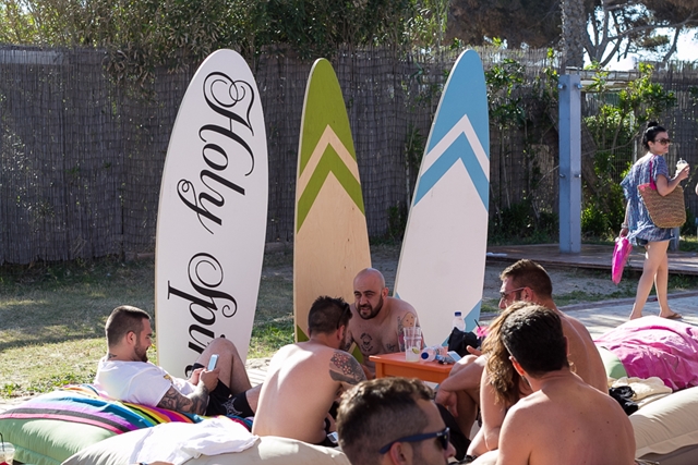 Αρχικά, μπαίνοντας στο Vrakiza Resort δεν καταλαβαίνεις πολλά. Η φάση είναι χαλαρή και ζεν καθώς ο κόσμος κάνει τα μπάνια του. Σιγά σιγά, πηγαίνοντας όλο και πιο αριστερά, πλησιάζεις το Holy Spirit. Ακούς γέλια, μουσική και βλέπεις μαζεμένο κόσμο γύρω από το beach bar. Ωπ, εδώ είμαστε. Η διακόσμηση δεν ξεφεύγει από το στυλ του μαγαζιού της Γλυφάδας, καθώς παίρνεις μια γεύση Curacao και Miami ενώ είσαι στη Βάρκιζα. Μικρά και πολλά αντικείμενα στην ψάθινη οροφή του μπαρ. Παρεό να κρέμονται και ένας Ken στο ποτήρι με τα καλαμάκια. Τα ψυγεία του μαγαζιού βρίσκονται σε ένα πράσινο και ένα άσπρο σπιτάκι που θυμίζει χώρο αλλαγής του ενός μαγιό με το άλλο. Και ο DJ σε δικό του φούξια πόστο με παρέο και ξύλινες ταμπελίτσες να κρέμονται δίπλα του. Εκείνος είναι που έχει διάθεση για όλους εκεί μέσα, καθώς δεν σταματάει να κουνιέται στους ρυθμούς της μουσικής που παίζει. Πηγαίνοντας προς την παραλία, βλέπεις κόσμο με μαγιό να λιάζεται στις μεγάλες μαξιλάρες του Holy Spirit, με παλιές ξύλινες σανίδες του surf για background.