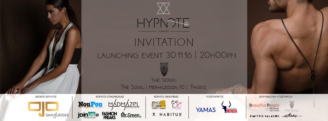 Τα κοσμήματα της σειράς HYPNOTE Jewelry ξεκινούν την συναρπαστική τους διαδρομή στον μαγικό κόσμο της μόδας με ένα ανατρεπτικό Launching Event που θα πραγματοποιηθεί την Τετάρτη 30 Νοεμβρίου στον πολυχώρο του Sowl στο Θησείο.