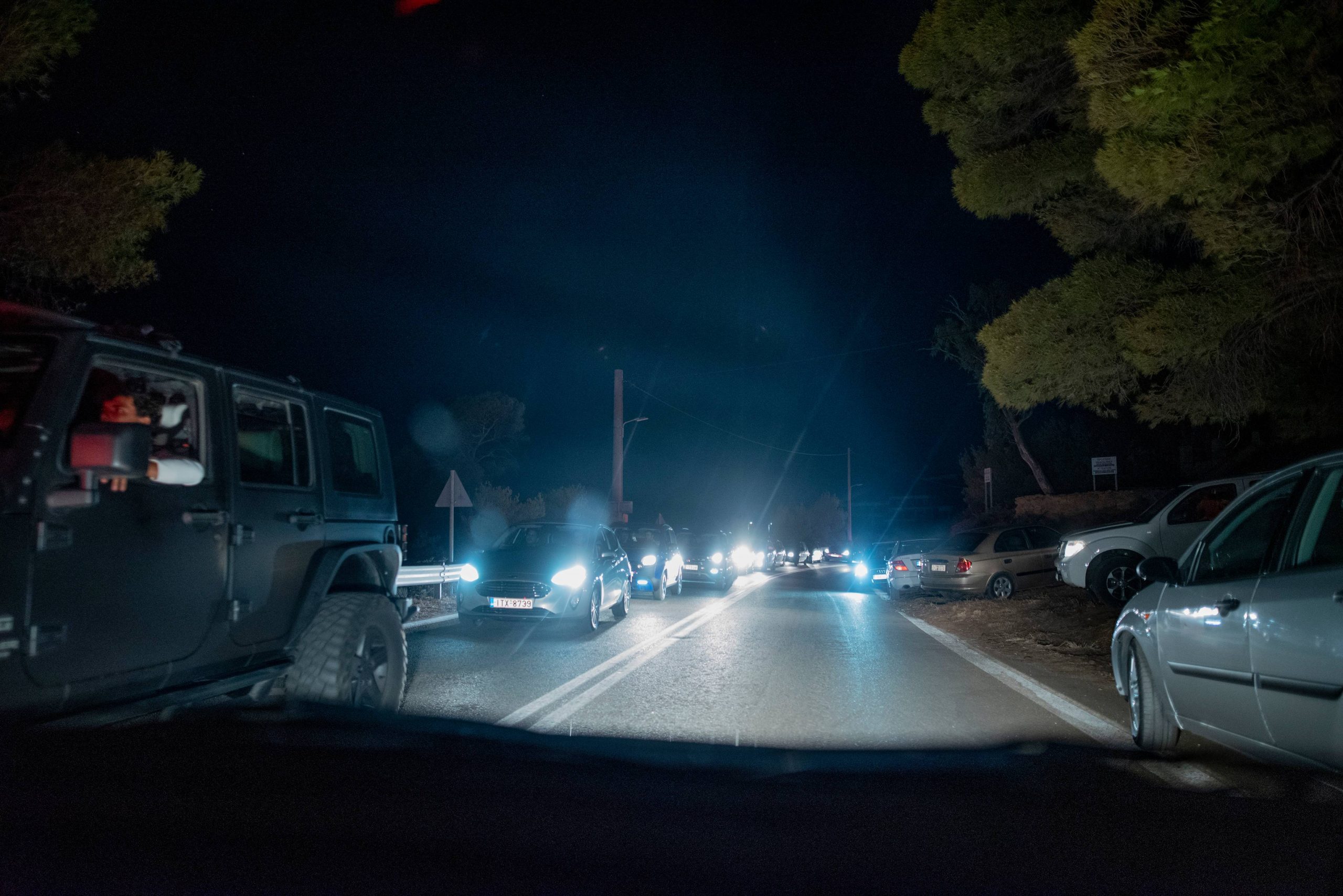 Νωρίς το βράδυ όμως ξεκινήσαμε για τον Ναό. Αυτό που αντικρίσαμε ήταν ανεπανάληπτο. Περίπου 3-4 χιλιόμετρα ουρές παρκαρισμένων αυτοκινήτων στον δρόμο και στα χωμάτινα πάρκινγκ της περιοχής. Η Αστυνομία προσπαθούσε να συντονίσει τους πεζούς και τους οδηγούς, ενώ χιλιάδες άνθρωποι περπατούσαν τριγύρω, ντυμένοι με όμορφα ρούχα και κάμερες στο χέρι. Η ανηφόρα για τον Ναό είχε κλείσει, με τα αυτοκίνητα να είναι παντού σταθμευμένα.