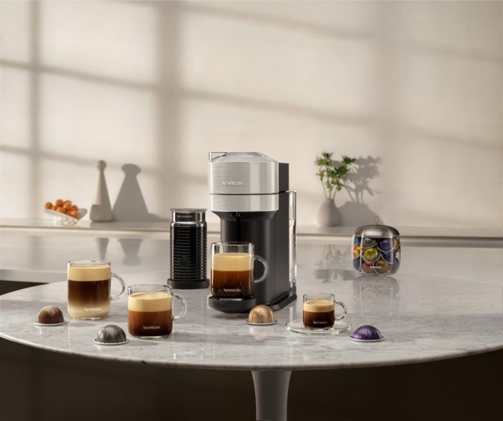 Η εταιρεία δε, τηρώντας την δέσμευσή της για βιωσιμότητα και στη σειρά Vertuo, δημιουργεί κάψουλες από αλουμίνιο, ένα αέναα ανακυκλώσιμο υλικό, το οποίο προστατεύει προσεκτικά τη φρεσκάδα, την ποιότητα και τα αρώματα των καφέδων.