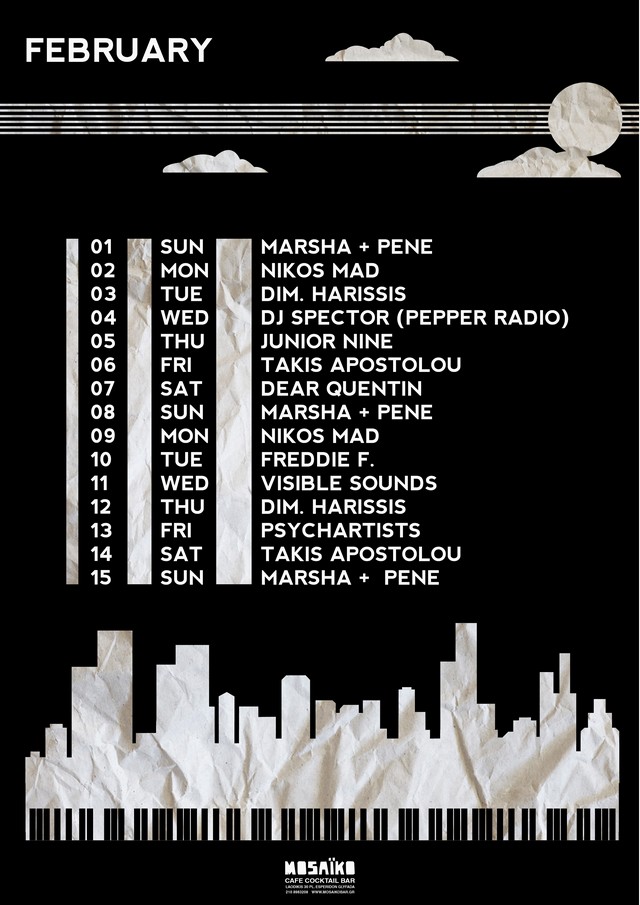 Το Mosaiko συνεχίζει και το Φεβρουάριο με την επιτυχημένη συνταγή του Ιανουαρίου: δίνοντας τα decks του σε έναν διαφορετικό DJ κάθε βράδυ.