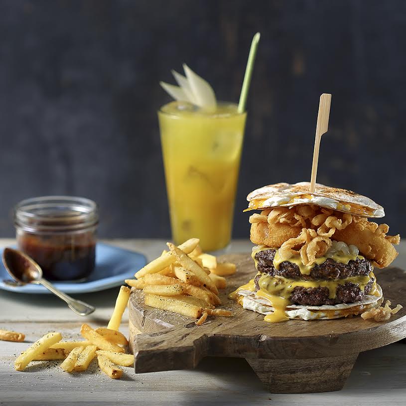 Τo TRUFFLE STACKED, είναι μία προκλητικά γευστική πρόταση με διπλό burger, Mozzarella & Monterey Jack με Truffle mix. Συνδυάζεται απόλυτα με 7 NIGHTS IN HAVANA με δυόσμο, σύκο και lime. To εναλλακτικό διπλό burger ΟΝΙΟΝ STACKED σερβίρεται σε δύο quesadillas με τυριά και BBQ sauce και απογειώνεται με τρία διαφορετικά είδη κρεμμυδιών (onion rings, frizzled & caramelized onions). Ταιριάζει άψογα με το ολοκαίνουριο HAVANA SUMMER ELIXIR, με γεύσεις από μάνγκο και αχλάδι.