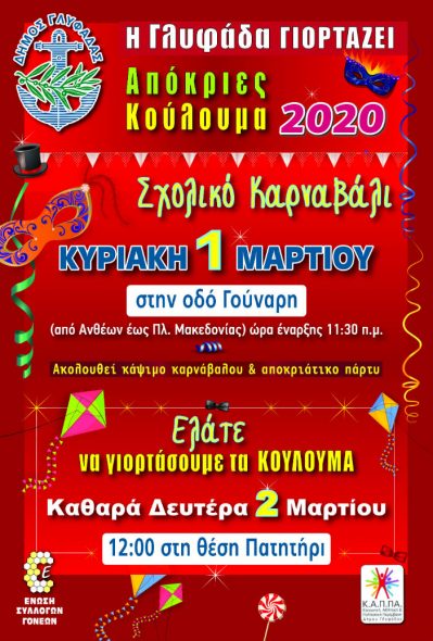 Οι εκδηλώσεις που θα γίνουν στη Γλυφάδα την Κυριακή της Αποκριάς και την Καθαρά Δευτέρα, ενώ θα πραγματοποιηθεί συναυλία με τον Ησαϊα Ματιάμπα.