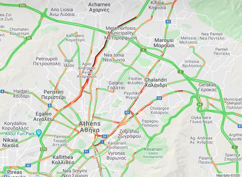 Εικόνα του δρόμου λίγο μετά τις 15:00 μέσα από τον χάρτη της Google, με την κίνηση να ξεκινά μετά την Κηφισιά και να καταλήγει μέχρι το Περιστέρι: