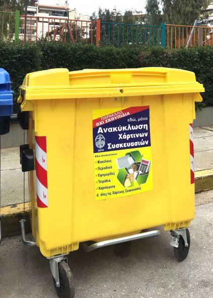 Κίτρινοι κάδοι ανακύκλωσης στη Γλυφάδα