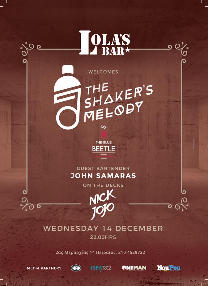 Την Τετάρτη 14 Δεκεμβρίου πάμε Πειραιά και λίγο μετά τις 22:00 επιλέγουμε το διαφορετικό για τα ελληνικά δεδομένα event, Τhe Shaker’s Melody by The BlueBeetle στο Lola’s Bar.